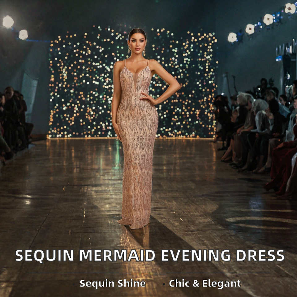 ชุดราตรีทรงเมอร์เมดเอวสูงหรูหรา ระบายอากาศได้ดี สำหรับผู้หญิง ชุดเดรสออกงานหรูหรา ประดับด้วยเลื่อม เหมาะสำหรับงานปาร์ตี้ งานแต่งงาน และงานอีเว้นท์ต่างๆ