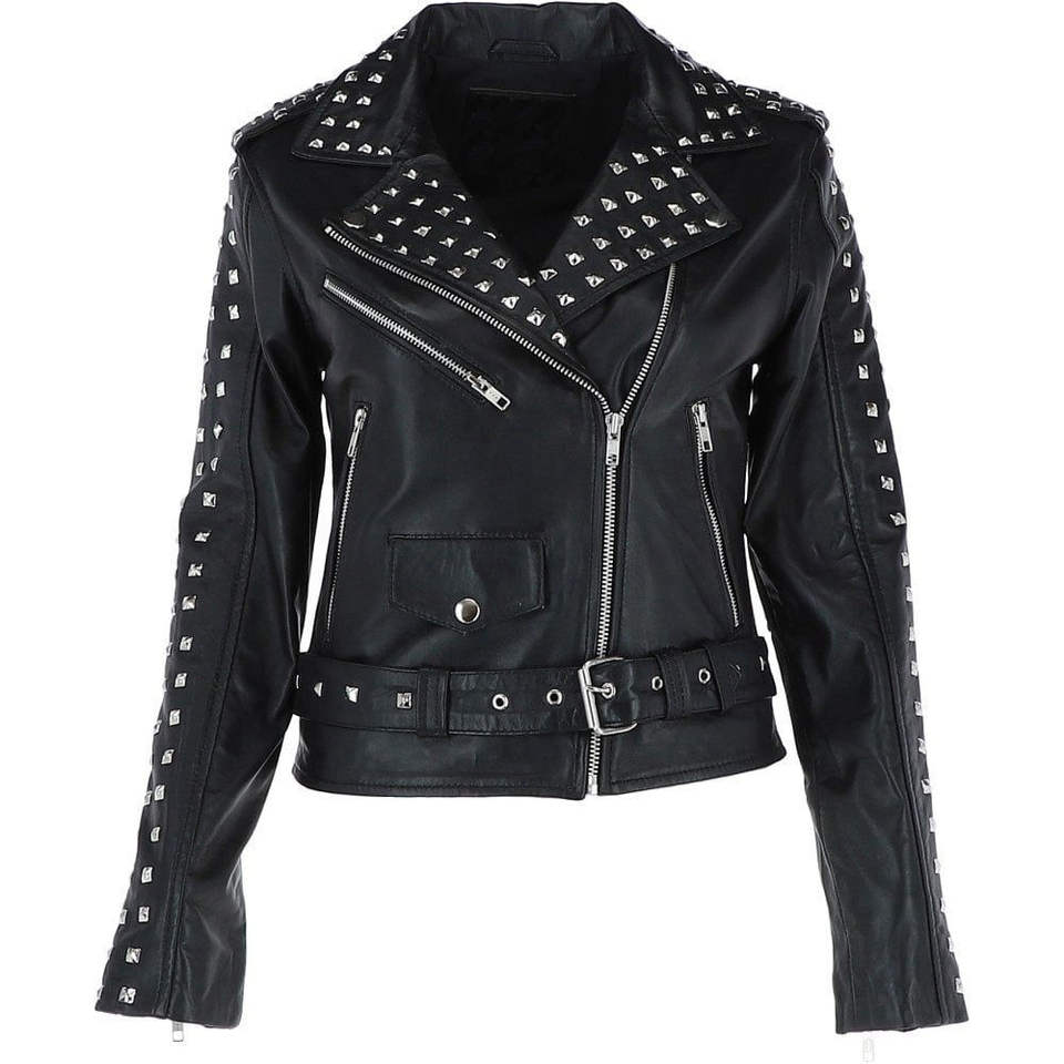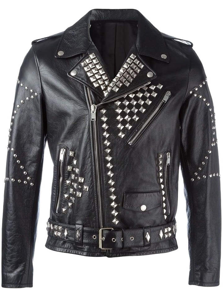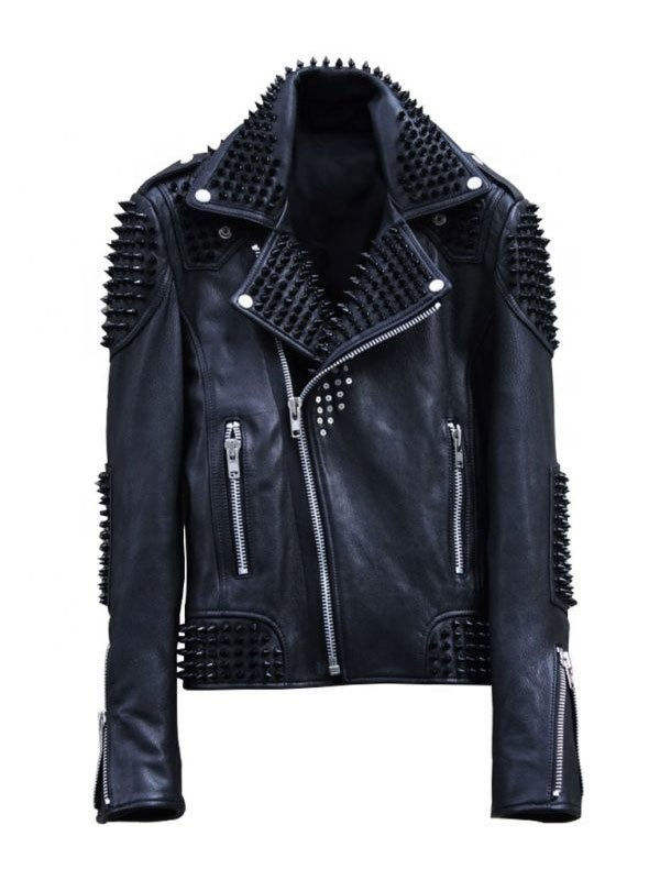 เสื้อแจ็คเก็ตหนังแท้สไตล์พังก์ร็อกสำหรับผู้ชาย ระบายอากาศได้ดี ตกแต่งด้วยหมุด เหมาะสำหรับขี่มอเตอร์ไซค์ งานปาร์ตี้ และสวมใส่ทั่วไป