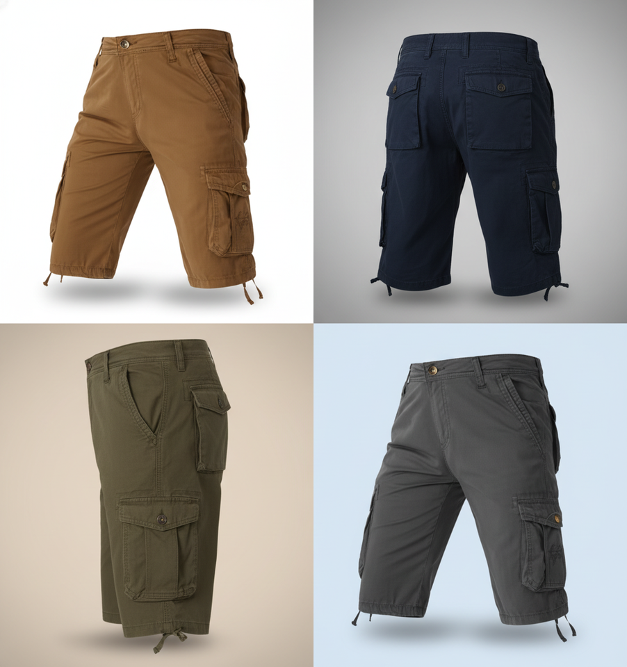 กางเกงขาสั้นคาร์โก้ผู้ชาย ระบายอากาศได้ดี สีกากี เอวผูกเชือก หลายกระเป๋า ผ้าฝ้าย สวมใส่สบาย เหมาะสำหรับชายหาดและการเดินทาง พิมพ์ลายดิจิทัล ป้องกันรังสียูวี