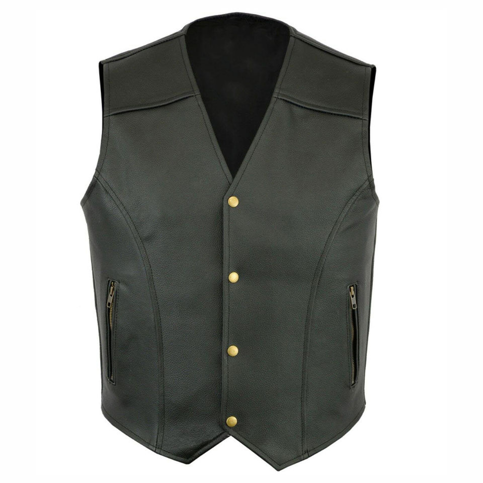 เสื้อกั๊กคอวีหนังวัวกระดุมแถวเดียวสไตล์วินเทจสำหรับผู้ชายเสื้อขี่มอเตอร์ไซค์
