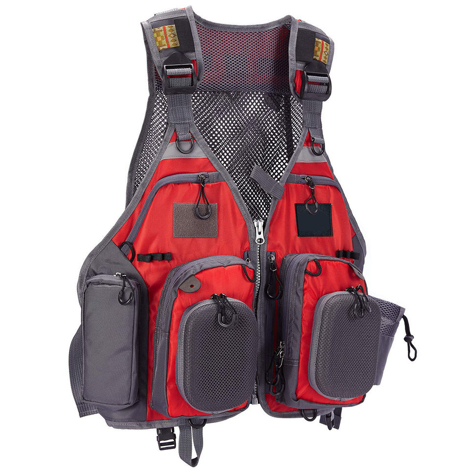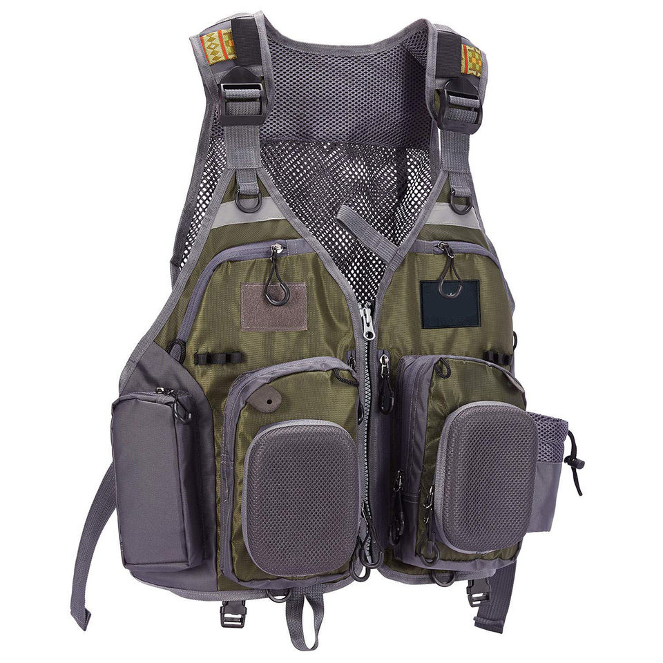 เสื้อกั๊กตกปลาตาข่ายระบายอากาศพร้อมกระเป๋าสะพายหลายช่อง เสื้อกั๊กตกปลาปรับได้ อุปกรณ์ตกปลากลางแจ้ง OEM