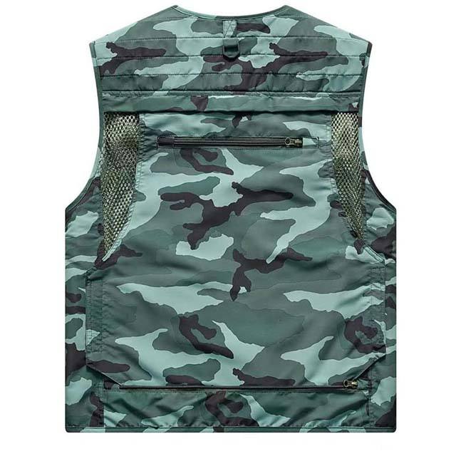 เสื้อกั๊กผู้ชายแบบมีกระเป๋าหลายช่องระบายอากาศได้ดีมีซิปแขนกุดแจ็คเก็ตผู้ชายฤดูใบไม้ผลิขนาดใหญ่สำหรับตกปลากลางแจ้งยุทธวิธี