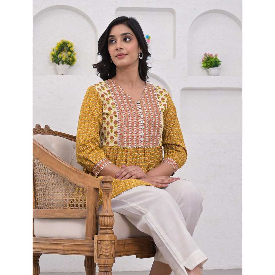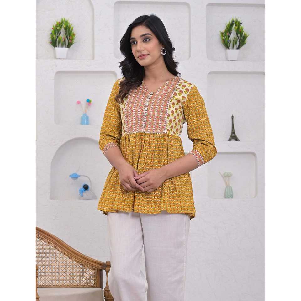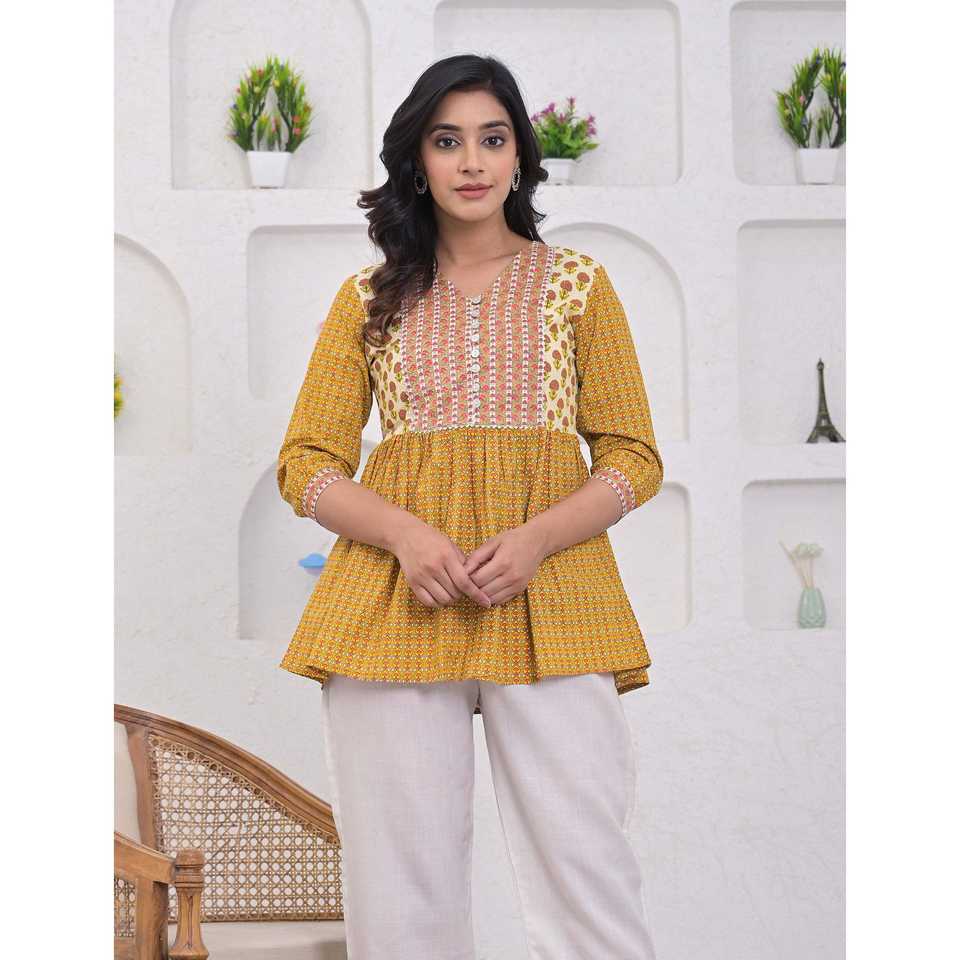 เสื้อสั้นพิมพ์ลายมัสตาร์ดผ้าฝ้ายระบายอากาศได้ดีตกแต่งแบบปัก
