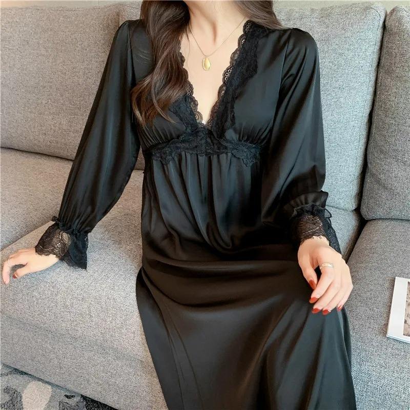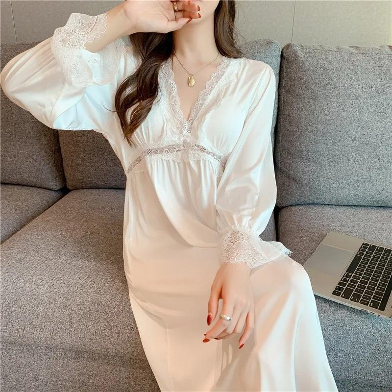 ชุดราตรียาวระบายอากาศได้ดีชุดเดรสสำหรับผู้หญิงชุดนอนคอวีสำหรับฤดูร้อน