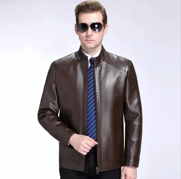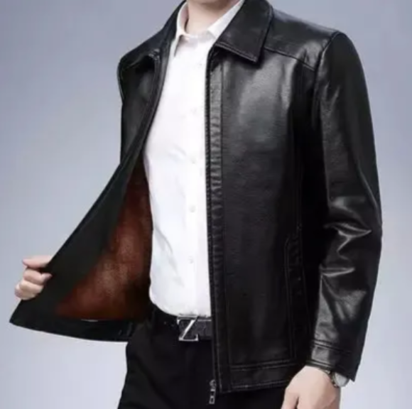 แจ็กเก็ตหนังสำหรับผู้ชายแจ็กเก็ตหนังสีล้วนคอพับลงงานตามสั่ง