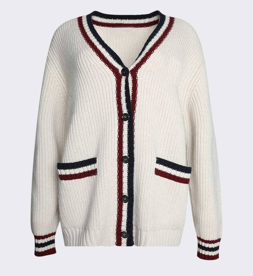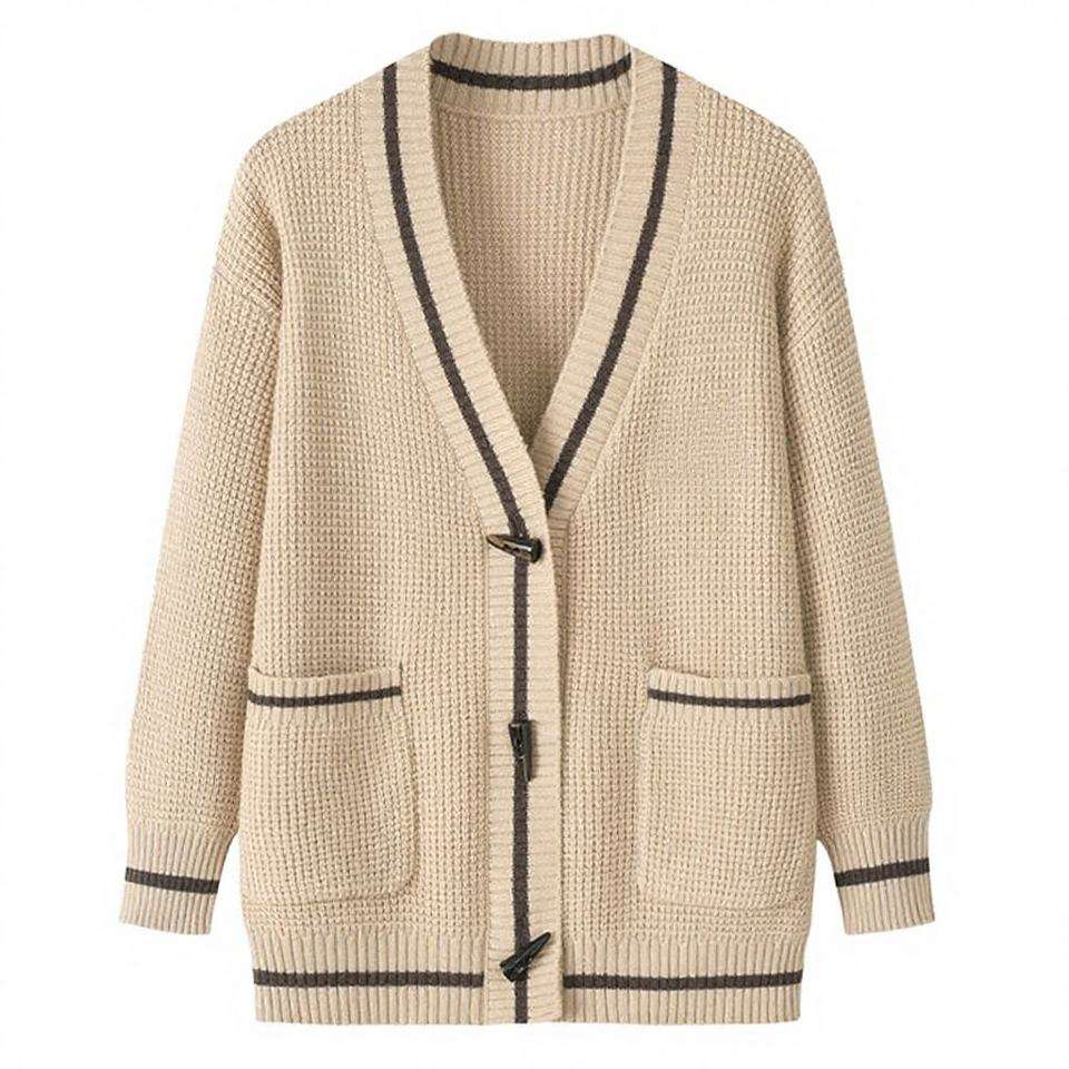 เสื้อคาร์ดิแกนคอวีสไตล์ Old Money ระบายอากาศได้ดี แขนลายทางหรูหราสำหรับผู้ชาย เหมาะสำหรับสวมใส่ลำลองอย่างมีสไตล์