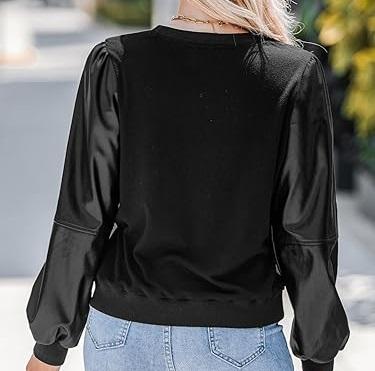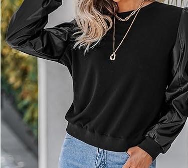 เสื้อยืดแขนยาวหนัง PU สีดำล้วน คอกลม สไตล์ลำลอง ระบายอากาศได้ดี สำหรับเล่นกีฬากลางแจ้ง ไซส์ใหญ่ ขายส่ง รับผลิตแบบ OEM ODM