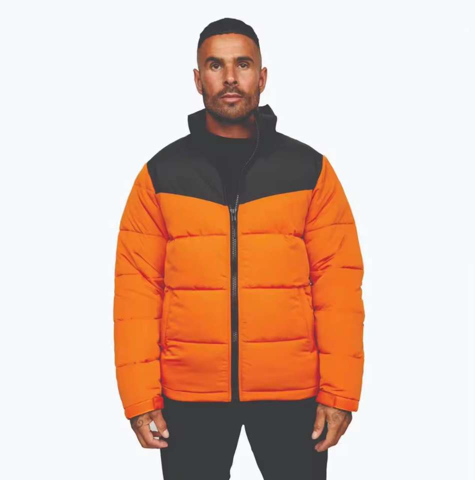 เสื้อโค้ทบุนวมระบายอากาศ สีดำเงา สไตล์สตรีทแฟชั่น สำหรับผู้ชาย ผ้าฝ้ายแบบควิลท์ ทรงพอง โลโก้ด้านหน้า