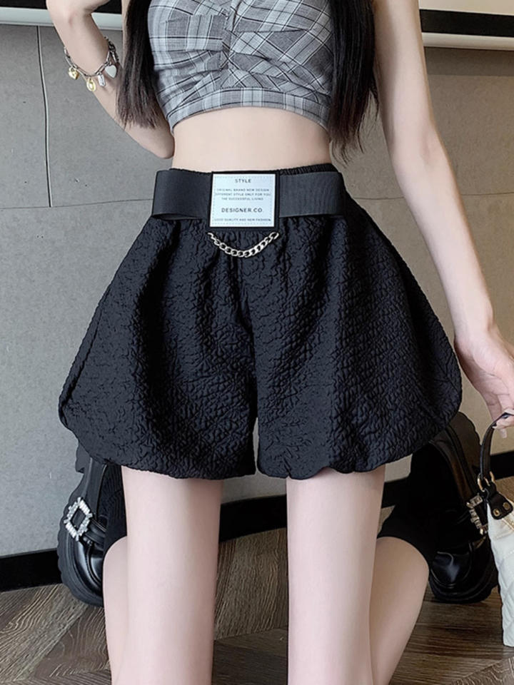 กางเกงขาสั้นทรงสกินนี่เอวสูงสีดำ ผ้าโพลีเอสเตอร์/ไนลอน ระบายอากาศได้ดี แฟชั่นสไตล์ฮาราจูกุ รุ่นคลาสสิค ปี 2025 สำหรับผู้หญิง
