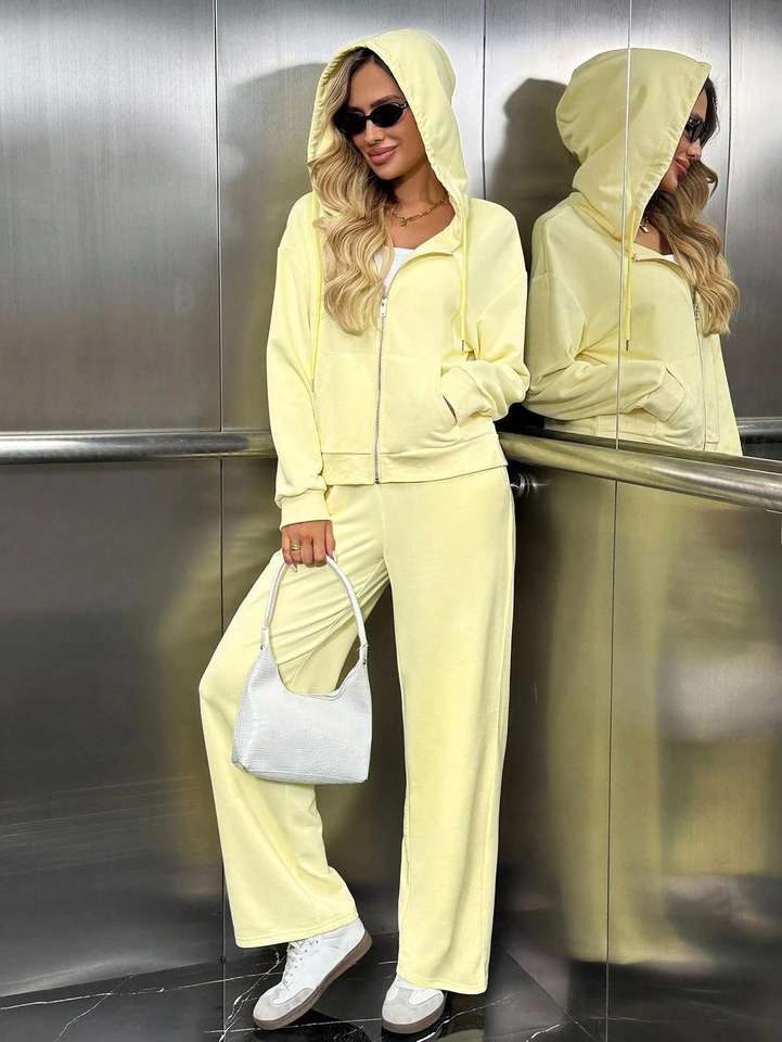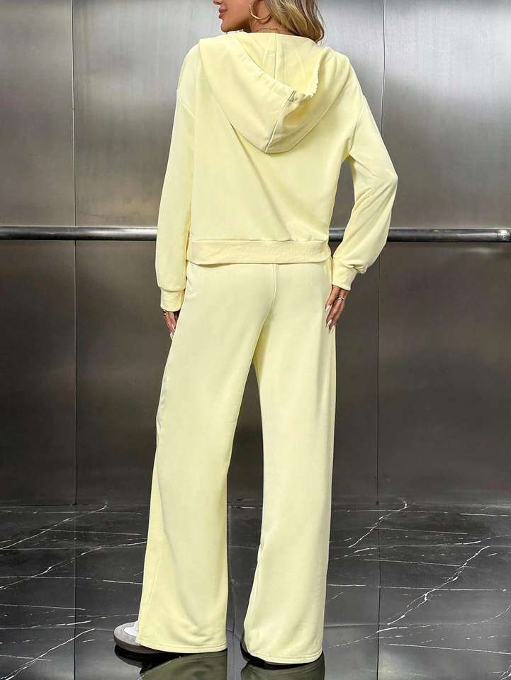ชุดลำลองผ้าฝ้ายระบายอากาศสไตล์วินเทจสำหรับผู้ใหญ่ ชุดเซ็ตเสื้อฮู้ดมีซิปปักลาย กางเกงขาบาน แฟชั่นชุดลำลองสองชิ้น