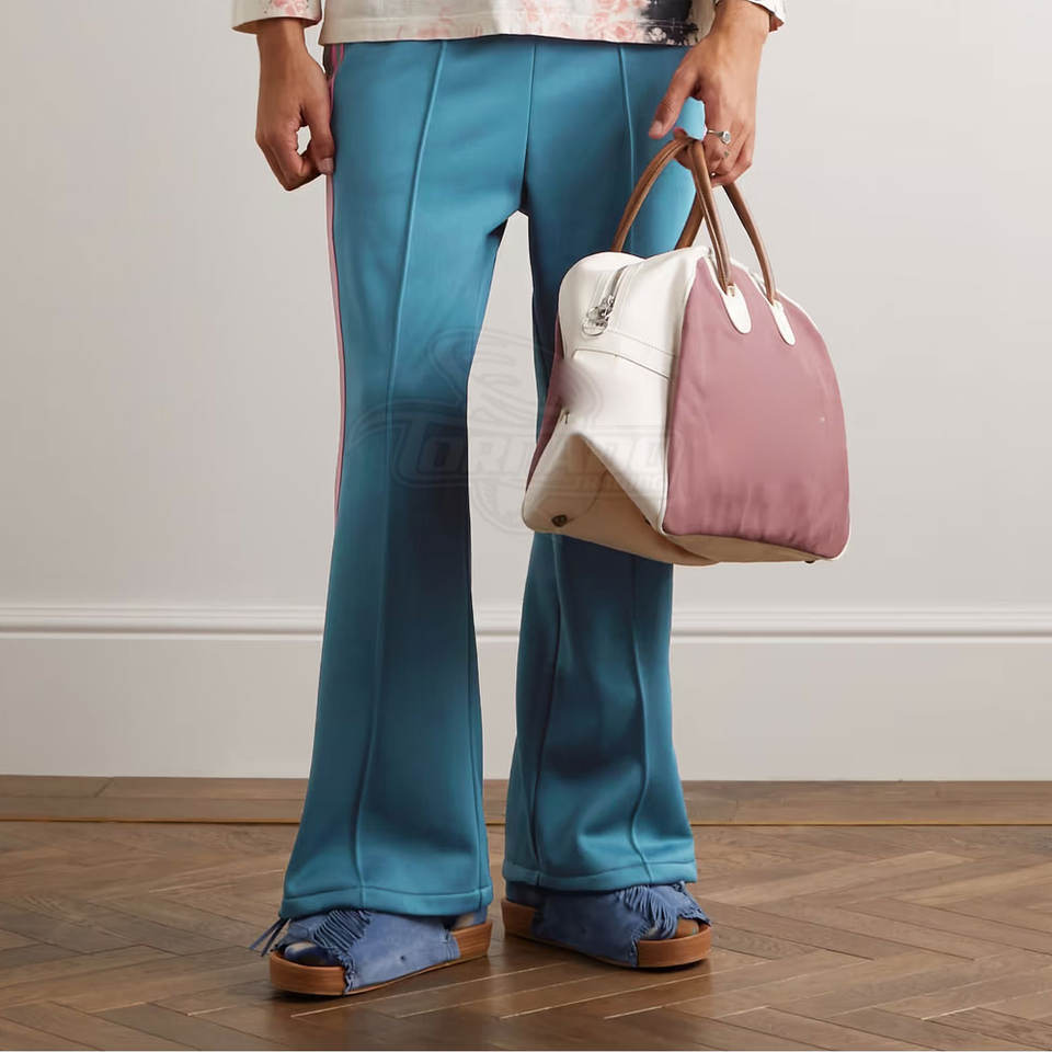กางเกงแทร็คผู้ชาย ระบายอากาศ แห้งเร็ว ทรงลำลอง เอวกลาง ผ้าฝ้ายยืดหยุ่นสูง สไตล์สตรีท ขาบาน ทรงตรง