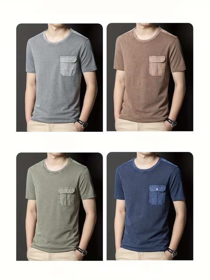 เสื้อยืดแขนสั้นระบายอากาศได้ดี แห้งเร็ว มีกระเป๋าหน้าอก คอกลมสำหรับผู้ชาย เหมาะสำหรับเล่นกีฬาและสวมใส่ลำลองในฤดูร้อนและฤดูใบไม้ผลิ