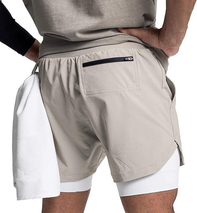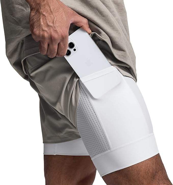 กางเกงขาสั้นออกกำลังกายระบายอากาศได้ดี แห้งเร็ว สำหรับผู้ชาย วิ่ง ฟิตเนส ผ้าตาข่าย กระชับสองชั้น กางเกงรัดกล้ามเนื้อ กางเกงเพาะกาย