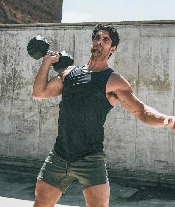 กางเกงขาสั้นกีฬาผู้ชายผ้าออกซ์ฟอร์ดเนื้อแน่น ระบายอากาศ แห้งเร็ว สไตล์ไฮสตรีท เอวยางยืด น้ำหนักเบา เหมาะสำหรับวิ่งและออกกำลังกาย ความยาว 5 นิ้ว
