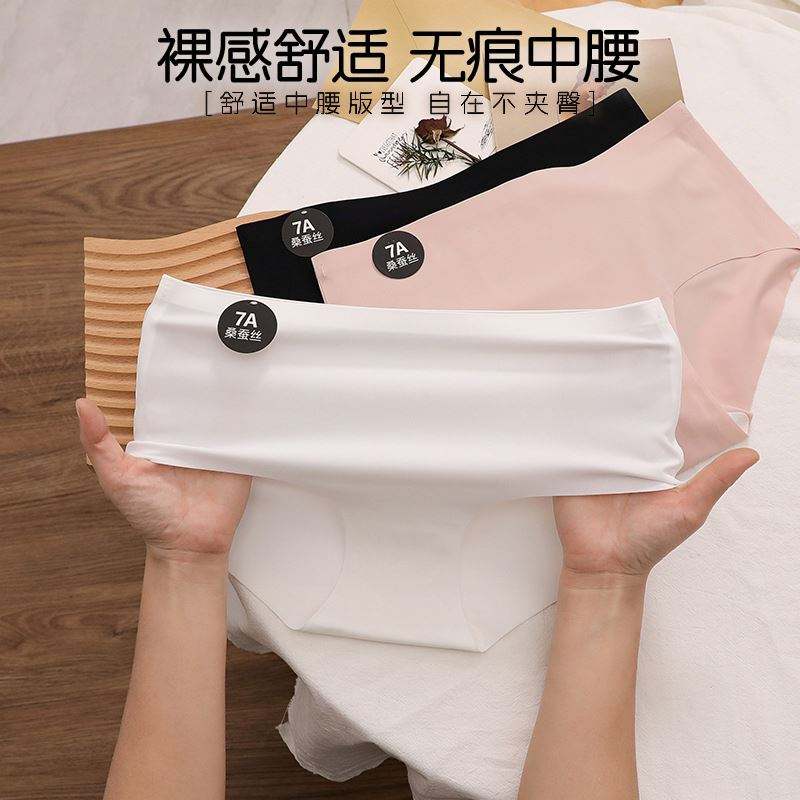 กางเกงชั้นในผ้าไหมระบายอากาศสำหรับผู้หญิง ทรงบอยชอร์ต เอวกลาง ไร้ตะเข็บ ปรับแต่งได้