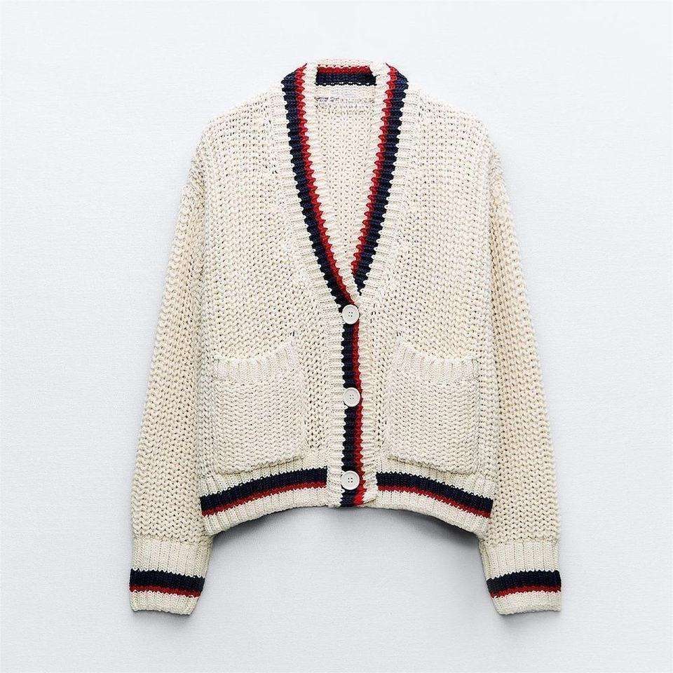 เสื้อคาร์ดิแกนคอวีเนื้อผ้านุ่มระบายอากาศได้ดี ลายทางสไตล์วาร์ซิตี้สำหรับผู้ชาย ติดกระดุม เหมาะสำหรับวัยรุ่นทันสมัย