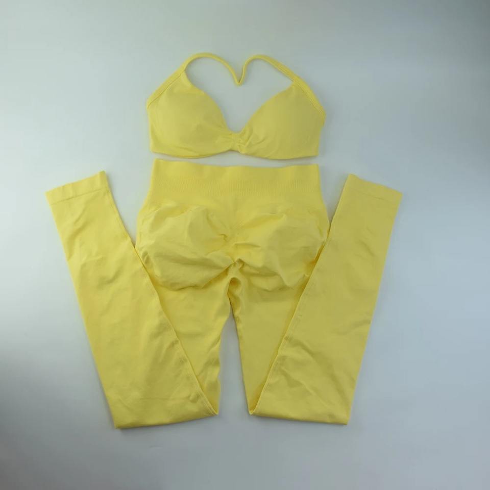 ชุดออกกำลังกายผู้หญิงเอวสูงผ้าระบายอากาศดี สำหรับเล่นกีฬาและโยคะ ผลิตจากผ้าสแปนเด็กซ์/ไนลอน