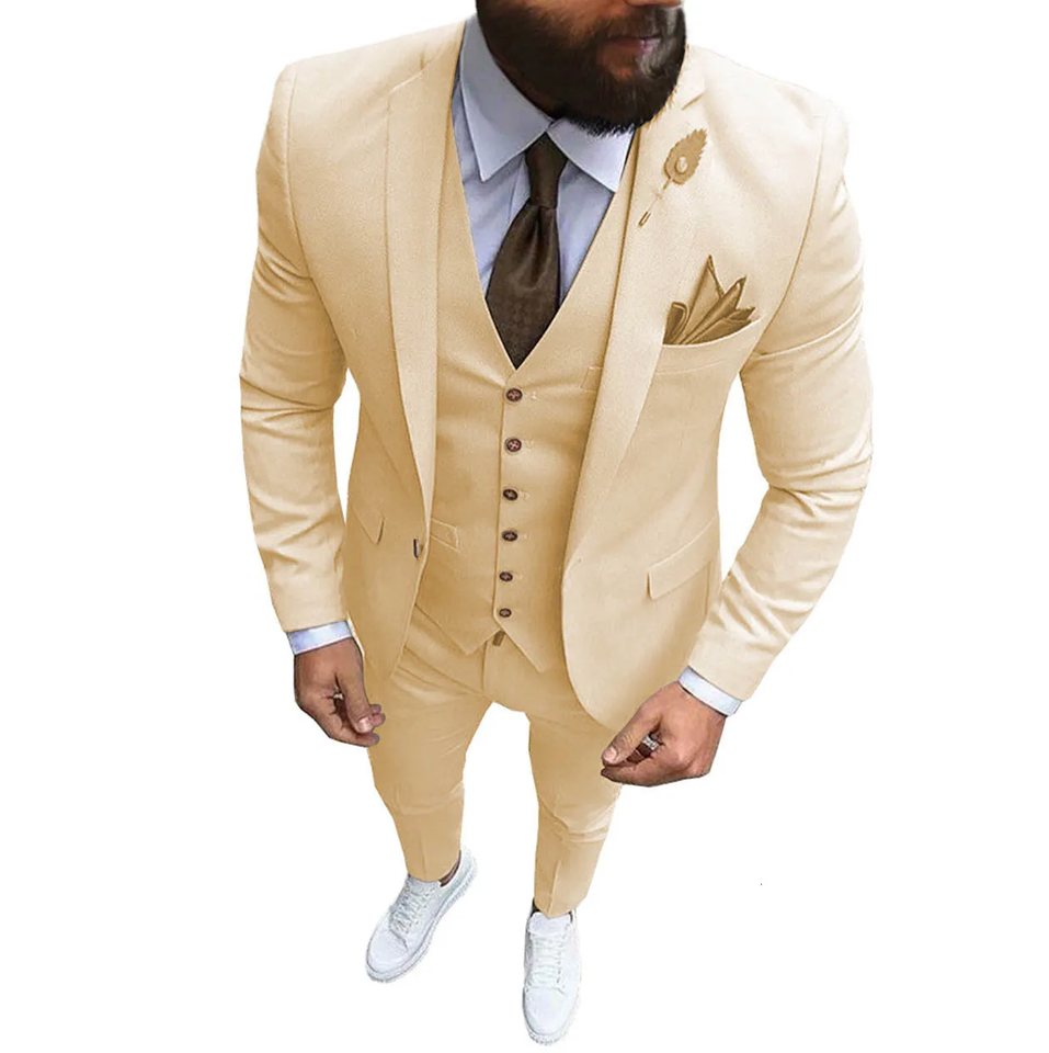 ชุดสูท3ชิ้นสำหรับผู้ชายระบายอากาศสีขาวทึบเสื้อผ้าลำลองออกแบบได้ตามต้องการสำหรับฤดูร้อน