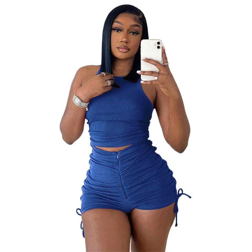 เดรสสั้นระบายอากาศสำหรับผู้หญิงชุดเดรสสองชิ้นแบบลำลองสำหรับฤดูใบไม้ผลิฤดูร้อนชุดเดรสเสื้อกั๊กแบบสั่งทำสำหรับผู้หญิง