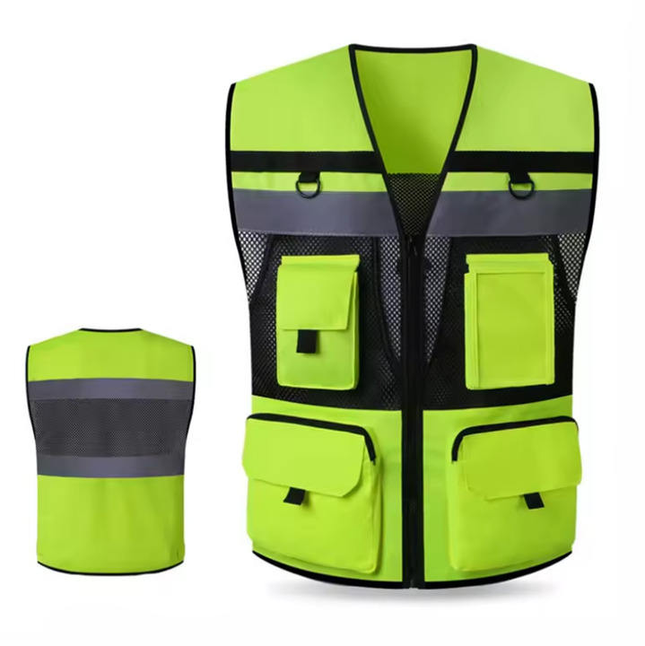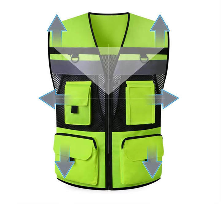 เสื้อกั๊กนิรภัยกันแทง ระบายอากาศได้ดี ผ้าโพลีเอสเตอร์สะท้อนแสง ชุดทำงานมองเห็นได้ชัดเจน สำหรับงานริมถนน งานรักษาความปลอดภัย และงานภาคสนาม