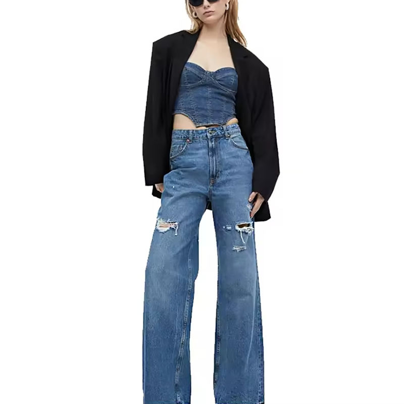 กางเกงยีนส์ทรงบานสำหรับผู้หญิง ดีไซน์ใหม่ ขายดี ระบายอากาศได้ดี น้ำหนักเบา ขายาว