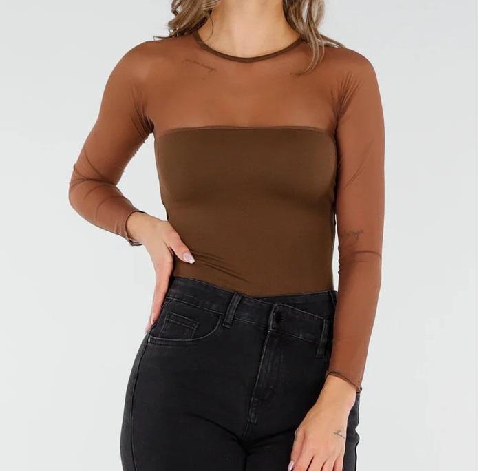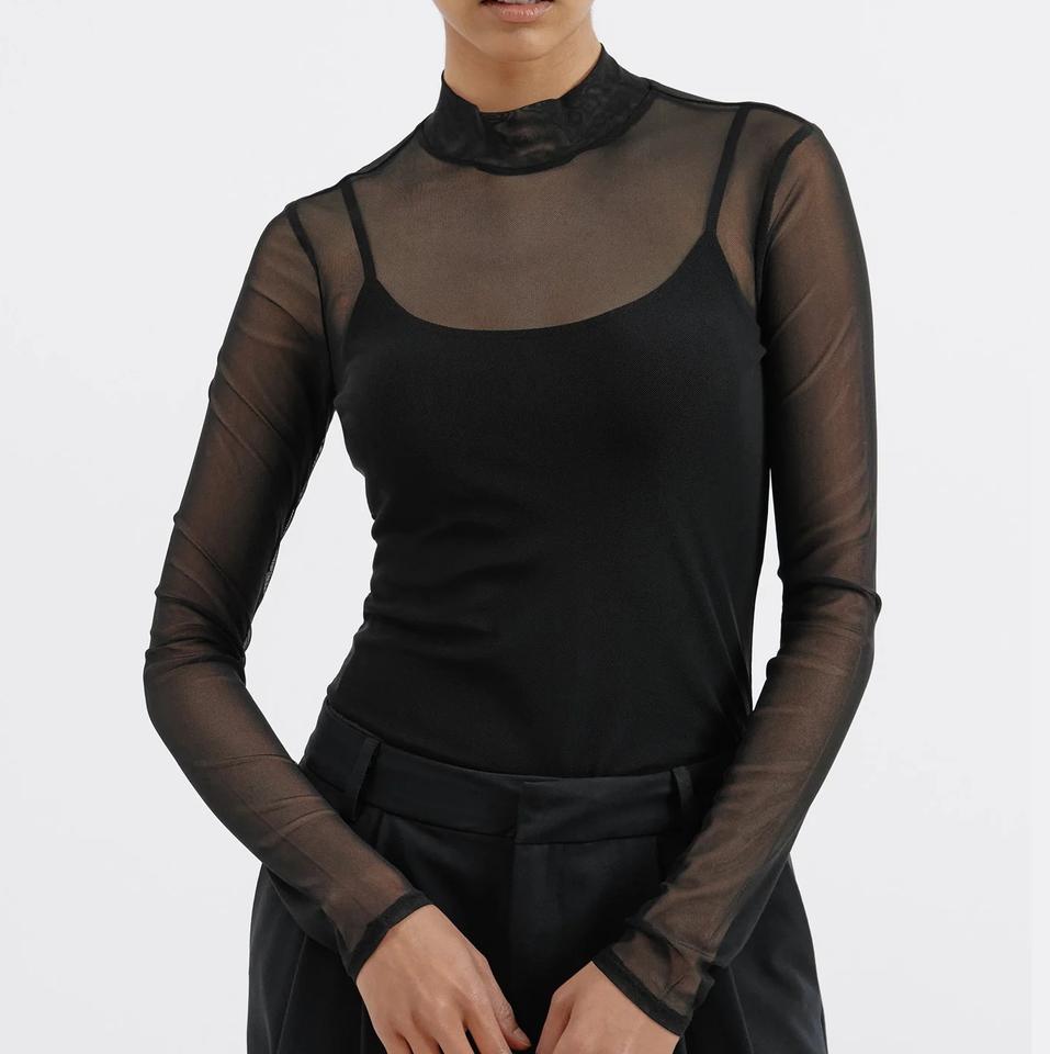 เสื้อยืดแขนยาวคอสูงแบบลำลองสำหรับผู้หญิง ผ้าตาข่ายระบายอากาศสำหรับฤดูร้อน เสื้อยืดตาข่ายโปร่งใส