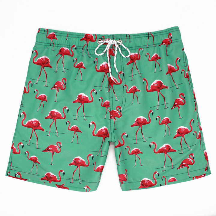 กางเกงว่ายน้ำขาสั้นของผู้ชายพิมพ์ลายซับลิเมชันกางเกงขาสั้นแบบปรับแต่งได้สำหรับฤดูร้อน