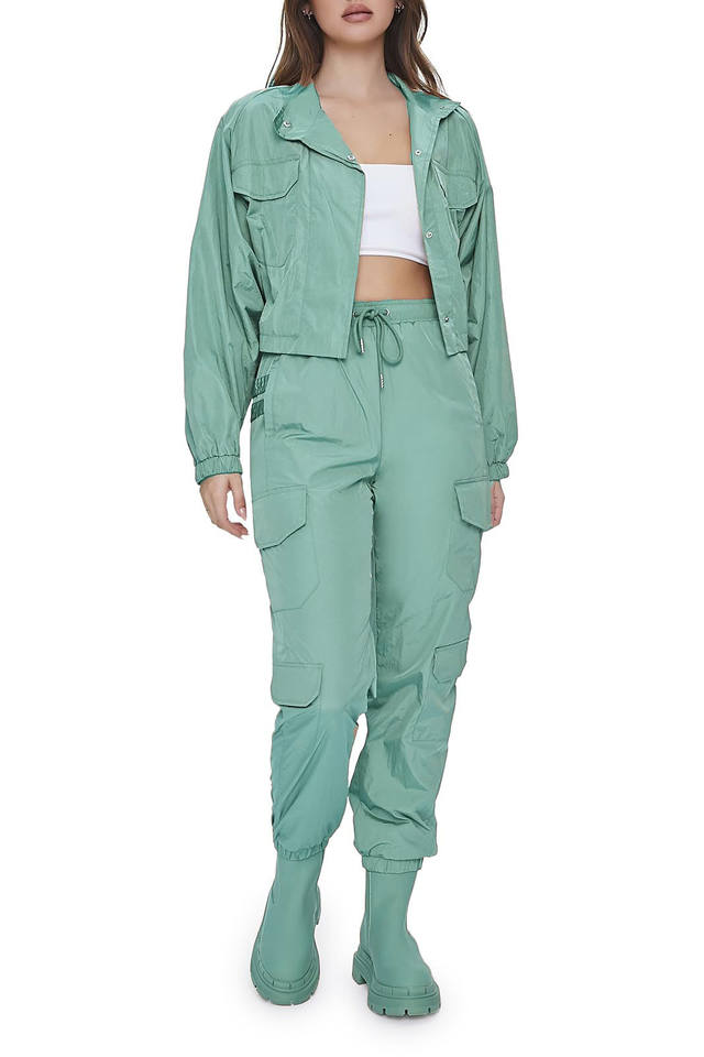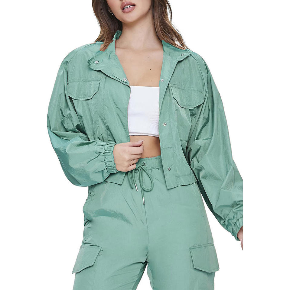ชุดวอร์มผู้หญิง2ชิ้นแห้งเร็วมีซิปกางเกงครอปท็อปกางเกงหรูหราชุดกันลมน้ำหนักเบาชุดวอร์ม2026