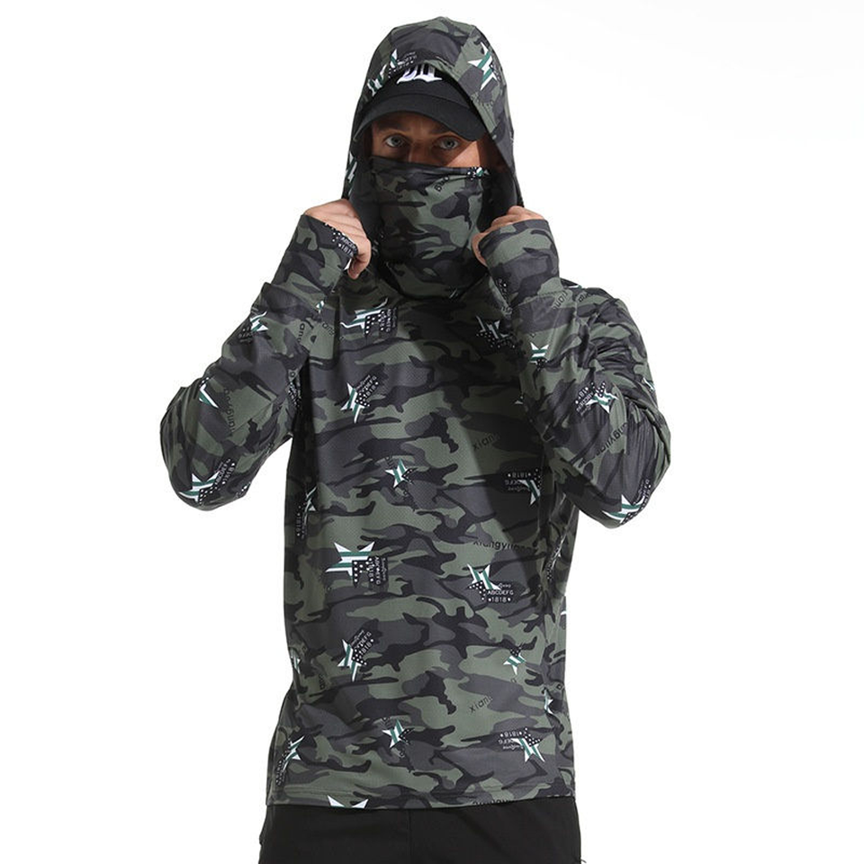 ชุดตกปลาแห้งเร็ว ระบายอากาศได้ดี ป้องกันแสงแดด UPF 50 ผลิตจากผ้าสแปนเด็กซ์ผสมโพลีเอสเตอร์ ลายพิมพ์