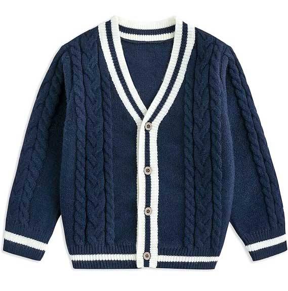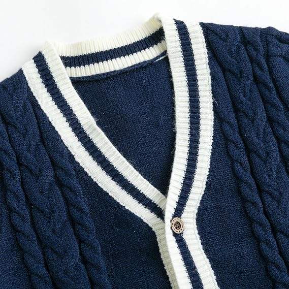 เสื้อคาร์ดิแกนคอวีระบายอากาศได้ดีสำหรับผู้ชาย เนื้อผ้านุ่มลายทางสไตล์วาร์ซิตี้ ให้ความสบายยาวนาน