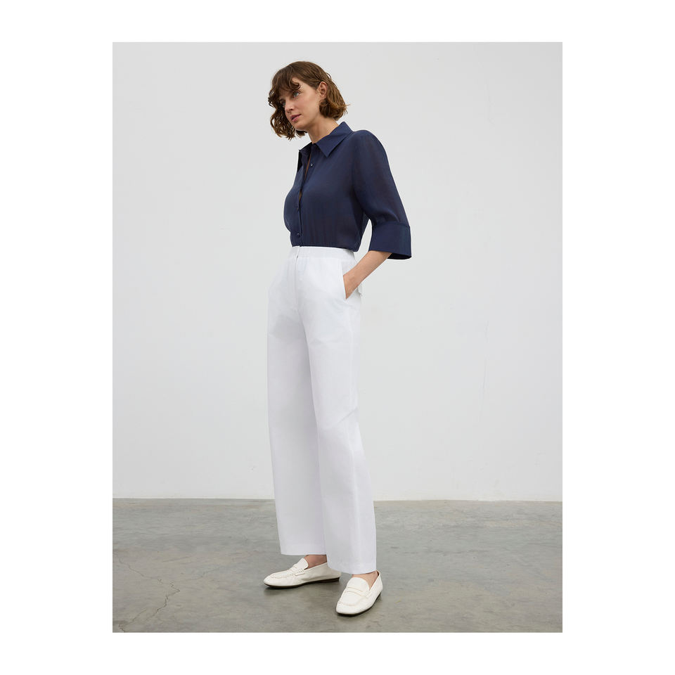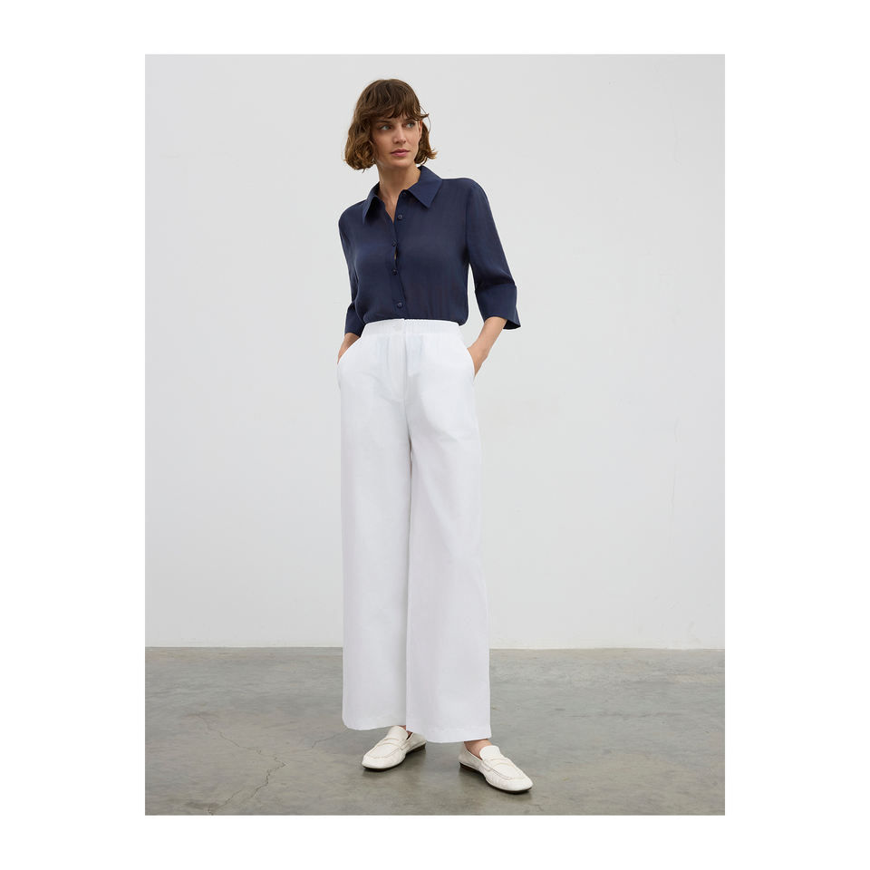 Breathable White Wide-Leg Cotton Blend Pants with Elastic Waistband for Women/Girl