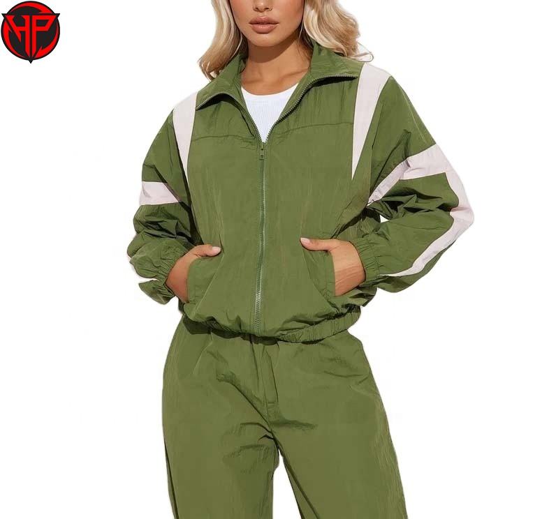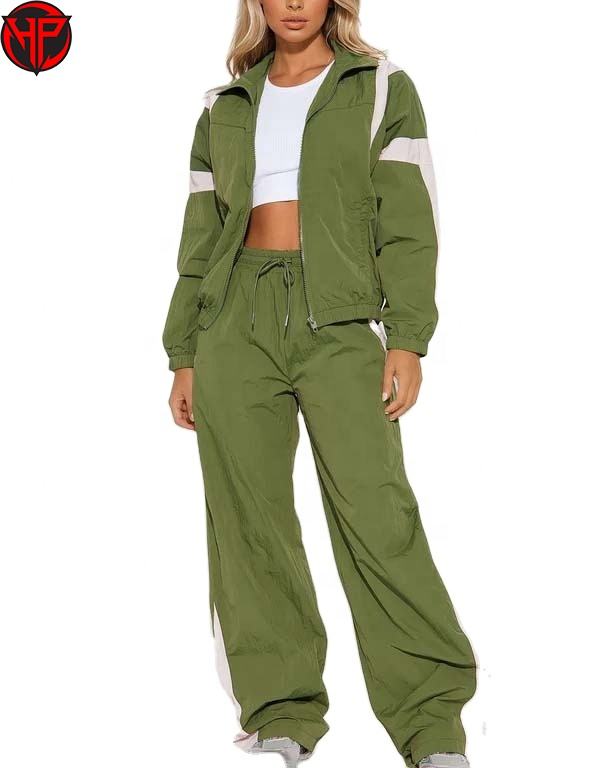 เสื้อแจ็คเก็ตกันลมระบายอากาศ ชุดแจ็คเก็ตกันลมสองชิ้น ชุดวอร์มแจ็คเก็ตกันลมขายส่งสำหรับผู้หญิง ชุดวอร์มสำหรับผู้หญิง