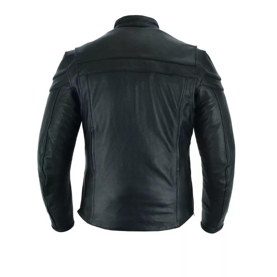 เสื้อแจ็คเก็ตหนังระบายอากาศสำหรับผู้ชาย รับสกรีนโลโก้ เสื้อแจ็คเก็ตหนังมอเตอร์ไซค์พรีเมียมสำหรับผู้ชาย รุ่น RRI-LJ04 พร้อมซิป