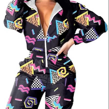 ชุดเซ็ตเสื้อแจ็คเก็ตกันลมแบบระบายอากาศได้ดีสองชิ้นสำหรับผู้หญิง ทรงปกติ สไตล์ลำลอง พร้อมโลโก้แบบกำหนดเอง