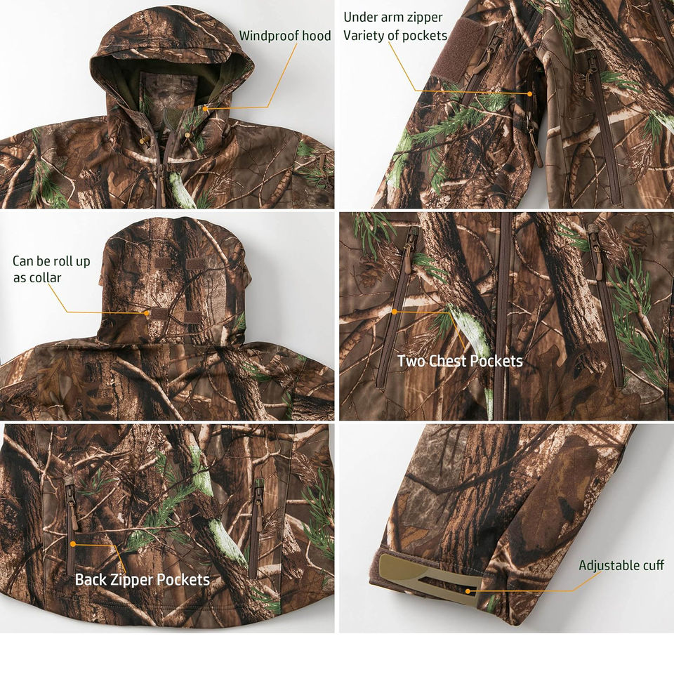 เสื้อแจ็คเก็ตสำหรับล่าสัตว์แบบซิป คุณภาพสูง ระบายอากาศ กันลม กันน้ำ เนื้อผ้านุ่ม สำหรับนักล่ากวาง ใช้ในฤดูหนาว แบบยุทธวิธี ปรับแต่งได้