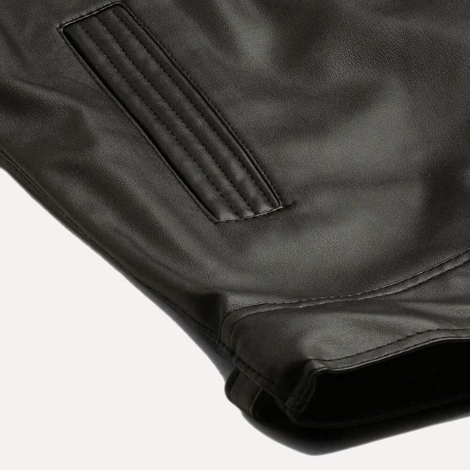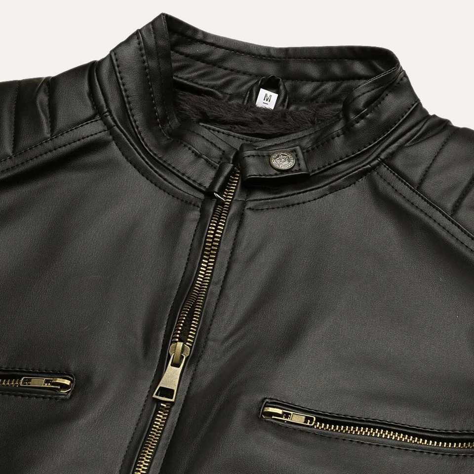 เสื้อแจ็คเก็ตหนังวัวบุขนเทียมสำหรับผู้ชาย ระบายอากาศได้ดี อุ่นสบายในฤดูหนาว คอตั้งเคลือบผิว ดีไซน์วินเทจ เป็นมิตรกับสิ่งแวดล้อม สวมใส่สบายๆ ราคาสมเหตุสมผล
