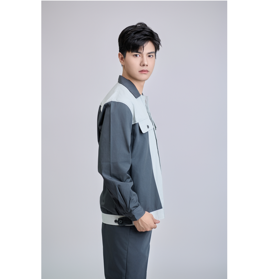 ชุดเซฟตี้สะท้อนแสงสีดำสำหรับผู้ชาย ผ้า TC ระบายอากาศ ผสมโพลีเอสเตอร์เวียดนามและผ้าฝ้าย แขนยาว ทนทาน ยี่ห้อ FMF
