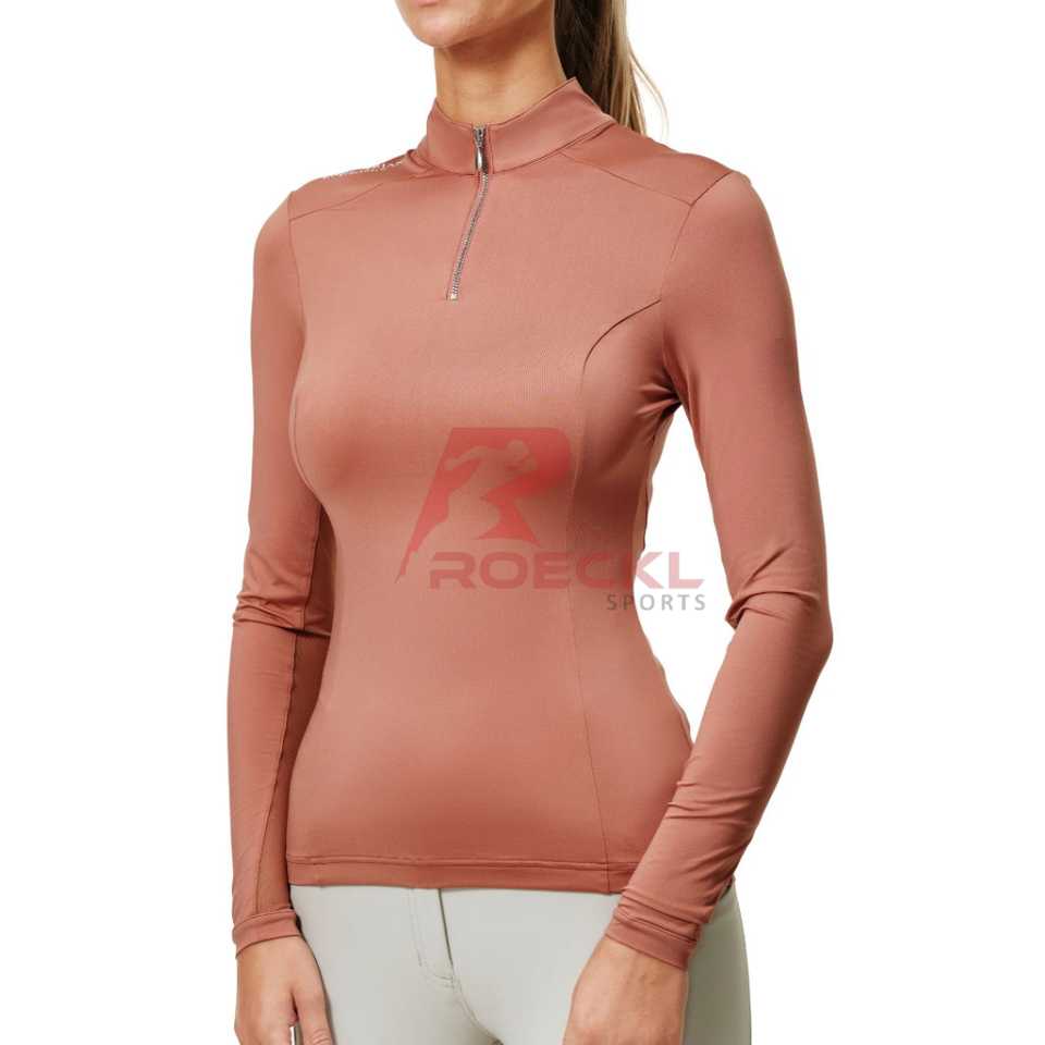 เสื้อขี่ม้าสำหรับผู้หญิงเสื้อออกกำลังกายผ้ายืดแบบมีสไตล์น้ำหนักเบาซับเหงื่อสวมใส่สบาย