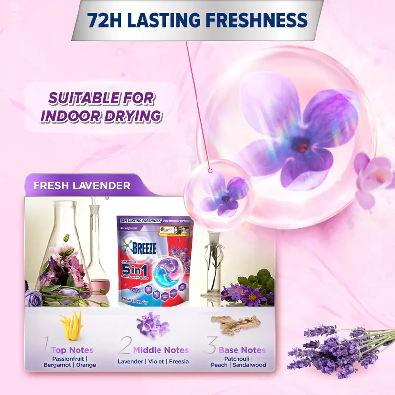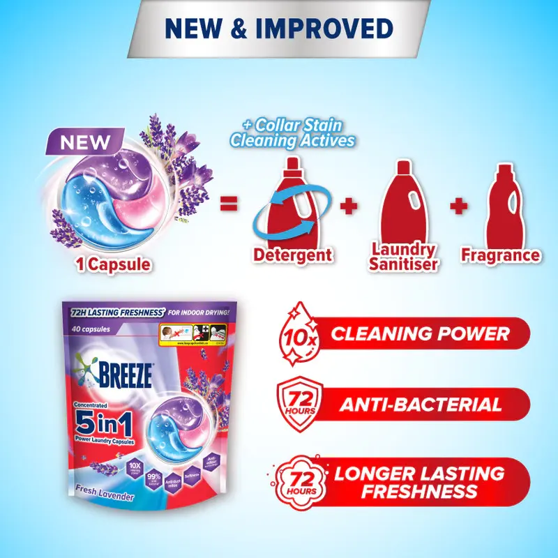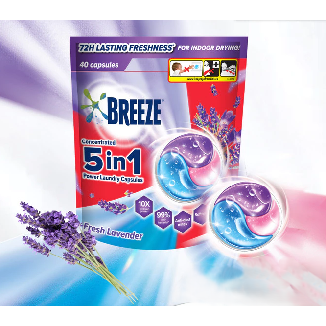 บรีซ 5 อิน 1 ผงซักฟอกแบบแคปซูล 420 กรัม กลิ่นลาเวนเดอร์สดชื่น รุ่นมาเลเซีย 0