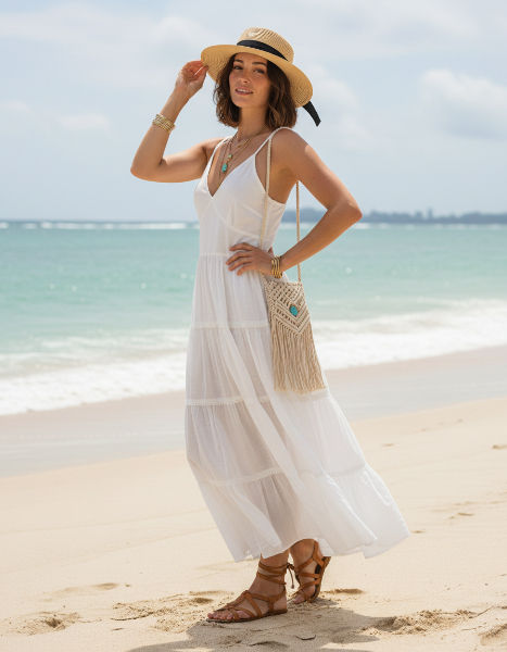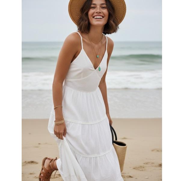 ชุดเดรสฤดูร้อนสำหรับผู้หญิง ผ้าสบายๆ เหมาะสำหรับเดินเล่นชายหาด วันหยุด และสวมใส่ในชีวิตประจำวัน