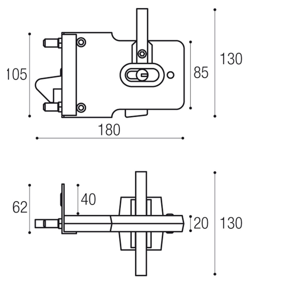 Brevetti Adem 170S swingless ตะขอล็อคภายนอกสำหรับประตูบานเลื่อนทำจากอิตาลีด้วยกุญแจ3ปุ่มย้อนกลับได้และกระบอกกุญแจ