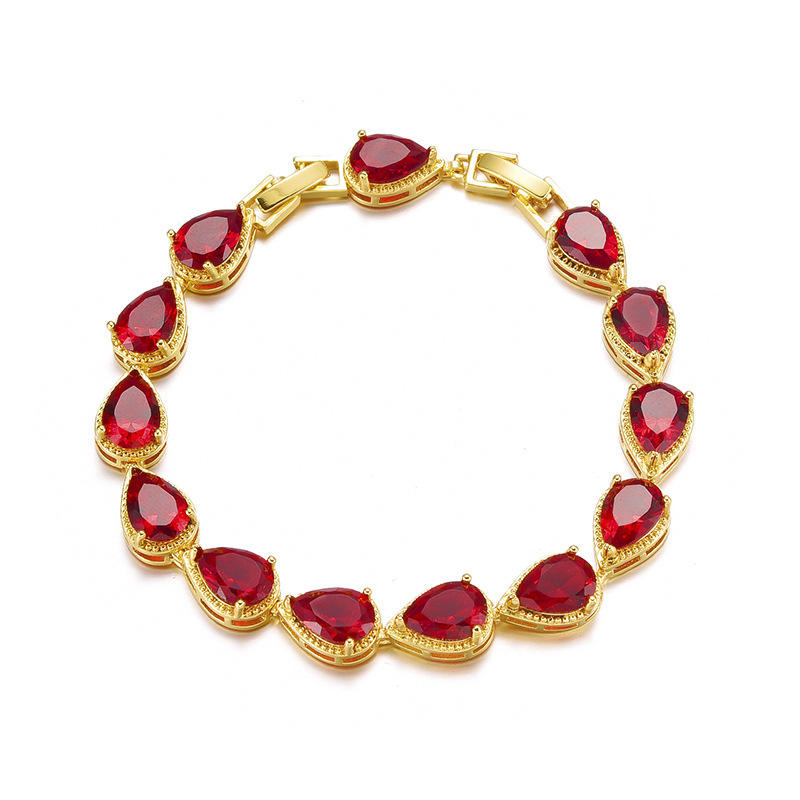 สร้อยข้อมือทับทิมสีแดงเงินสเตอร์ลิง925สำหรับเจ้าสาวสีทองสำหรับผู้หญิงหินคิวบิกเซอร์โคเนียเครื่องประดับเครื่องแต่งกายงานแต่งงาน