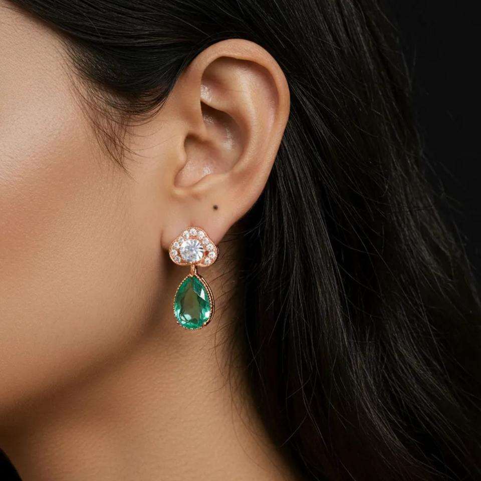 ชุดเครื่องประดับเจ้าสาวสไตล์ชาติพันธุ์ ต่างหูแบบโชคเกอร์ประดับมรกต ผลิตจากเงินแท้ Gajaah 925 สำหรับผู้หญิง เครื่องประดับดีไซเนอร์