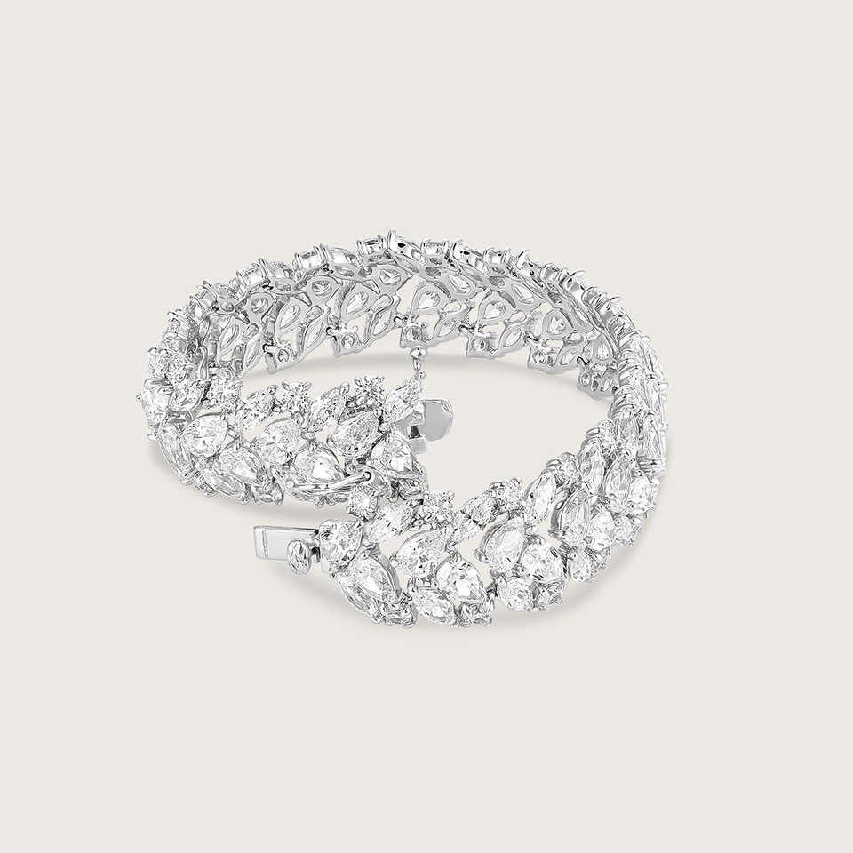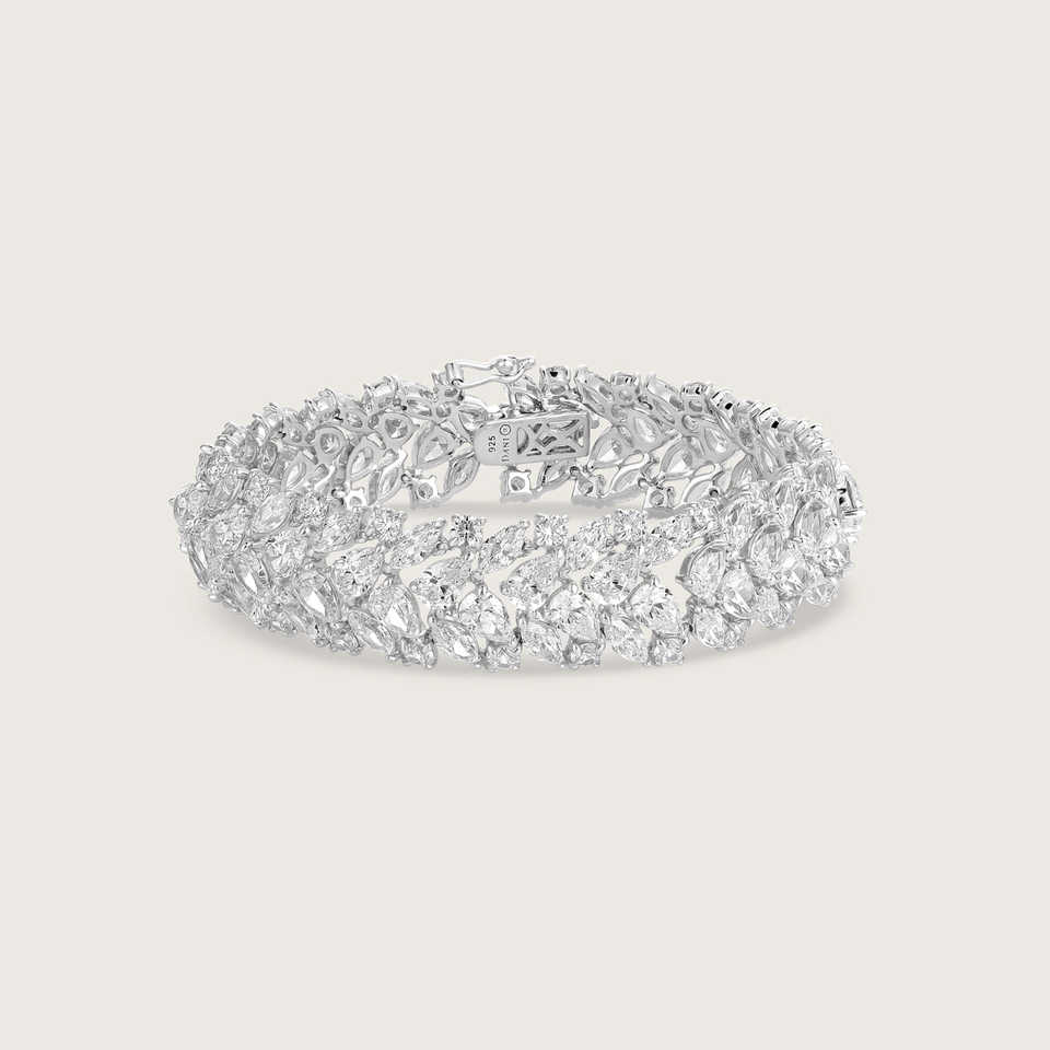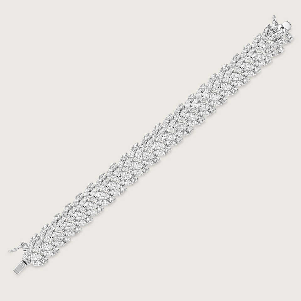 กำไลข้อมือเพชรทรงลูกแพร์ขนาด 17 ซม. สำหรับผู้หญิง ดีไซน์ทันสมัย เพชรแล็บ เพชรเงินแท้ 15 กะรัต รูปทรงลูกแพร์และมาร์คีส์ สี DEF ความใส VVS VS น้ำหนัก 20 กรัม