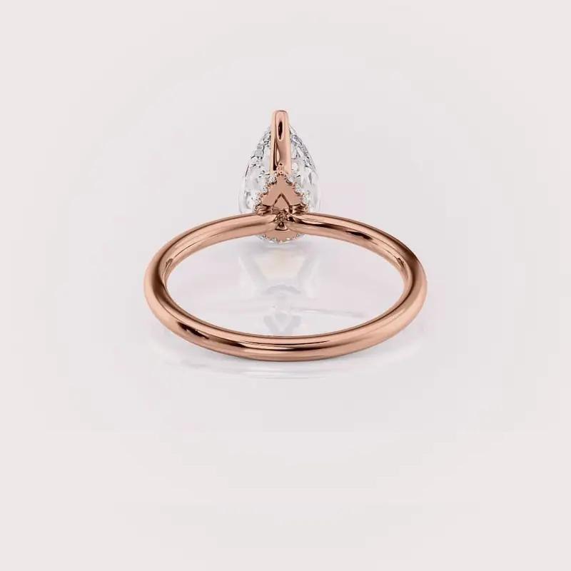 แหวนเพชรทรงลูกแพร์สำหรับเจ้าสาว ประดับเพชรทรงกลมด้านข้าง ด้วยทองคำขาว/ทองคำเหลือง/ทองคำชมพู 18K
