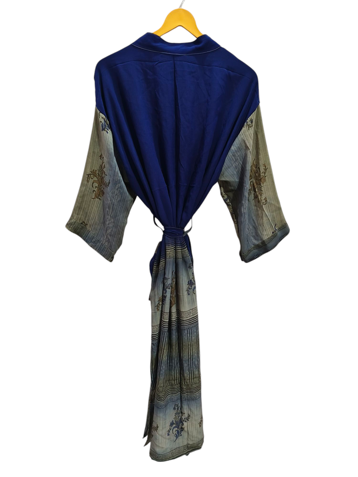 เสื้อคลุมเจ้าสาวน้ำหนักเบาชุดคลุมผ้าไหมสำหรับผู้หญิงชุดนอนเสื้อคลุมยาวพิมพ์ลายดอกไม้อินเดียชุดกิโมโนผ้าไหมส่าหรีรีไซเคิลวินเทจ