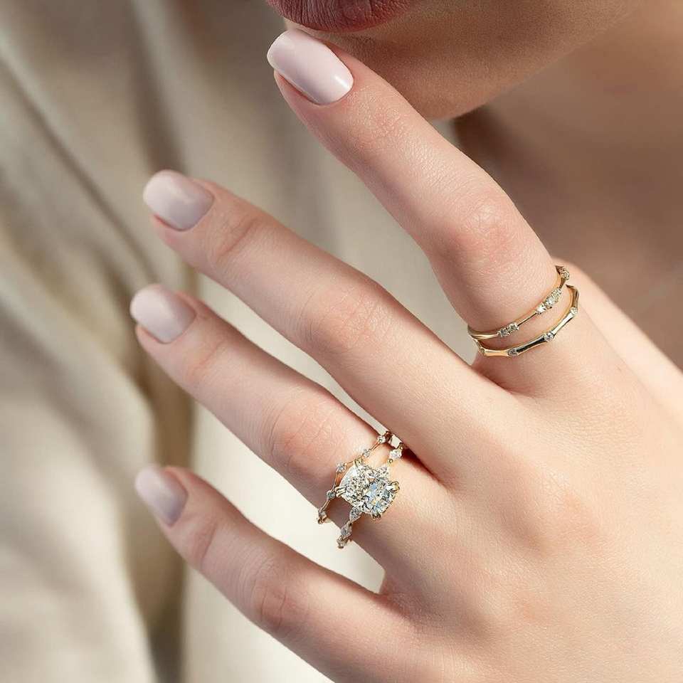 ชุดสำหรับเจ้าสาว3.15 CT ตัด Moissanite แหวนหมั้นพร้อมแถบจับคู่ยาวเบาะซ่อนแหวน