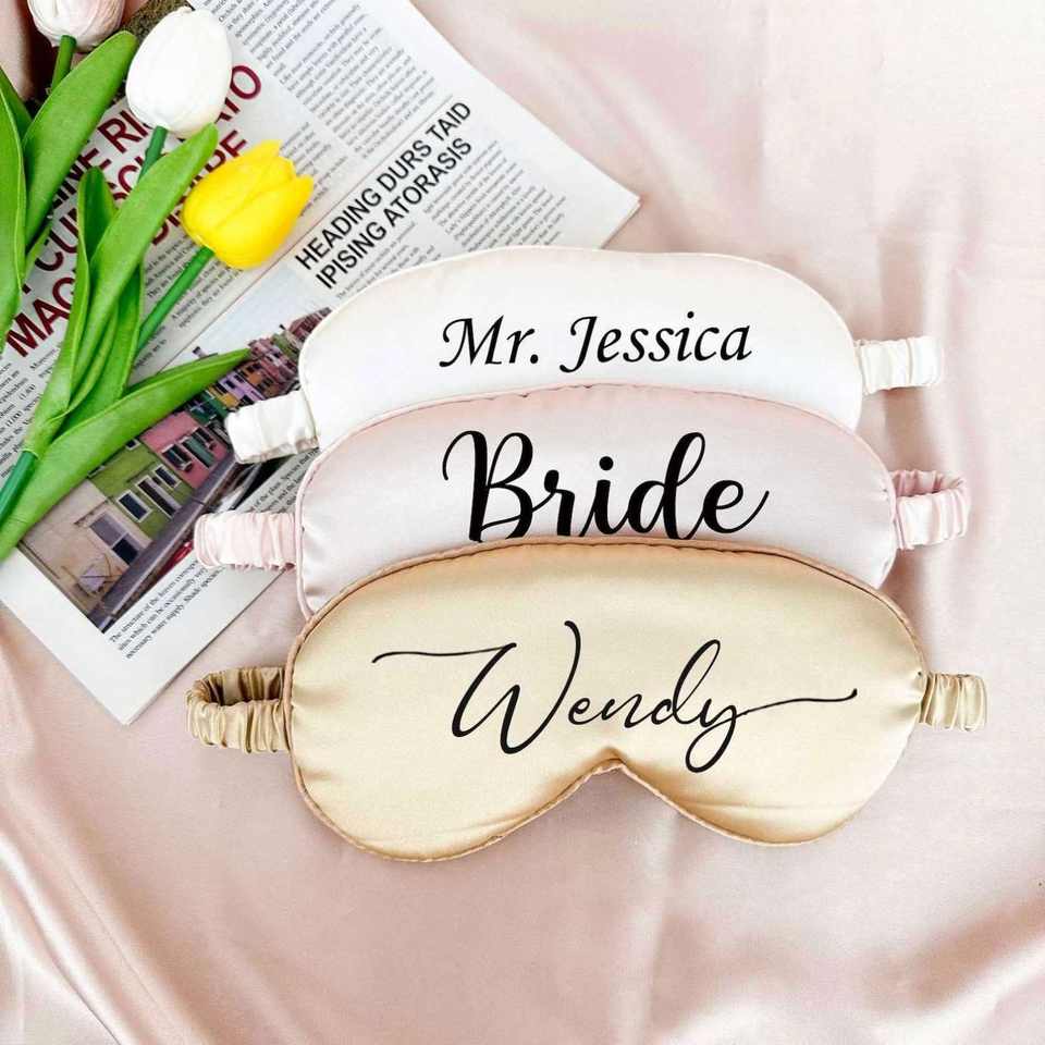 ของขวัญงานเลี้ยงฉลองสมรสสำหรับเจ้าสาว ชุดผ้าปิดตาถักนุ่มสองด้าน พร้อมยางรัดผมแบบยืดหยุ่นสำหรับการนอนหลับ