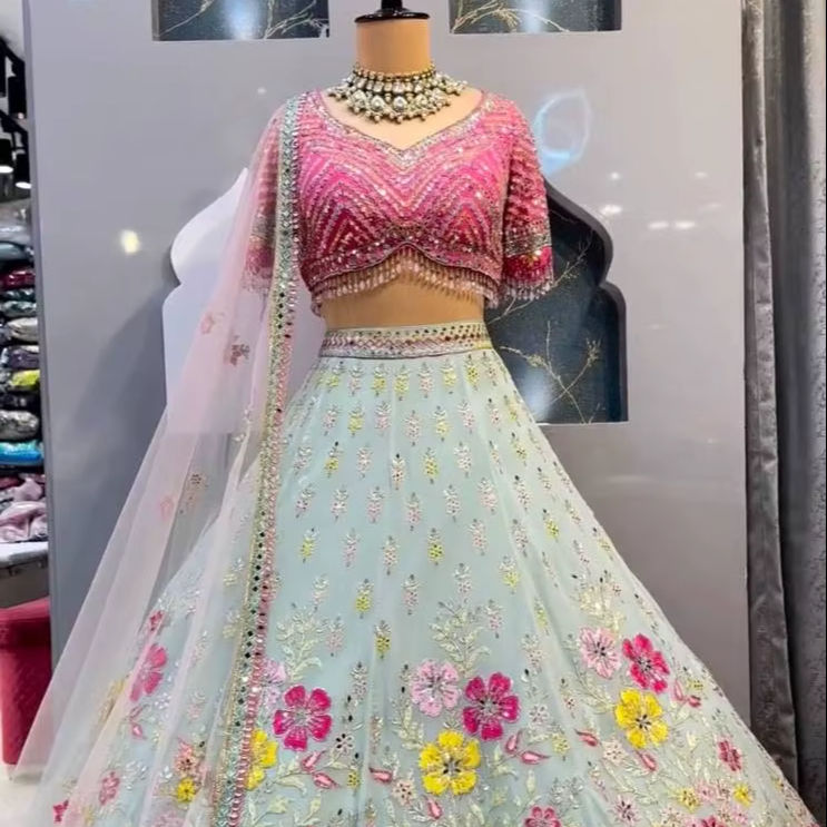 ชุดแต่งกายเจ้าสาวงานปักลวดลายเสื้อผ้าอินเดียและปากีสถาน