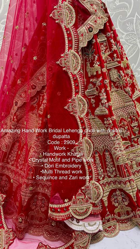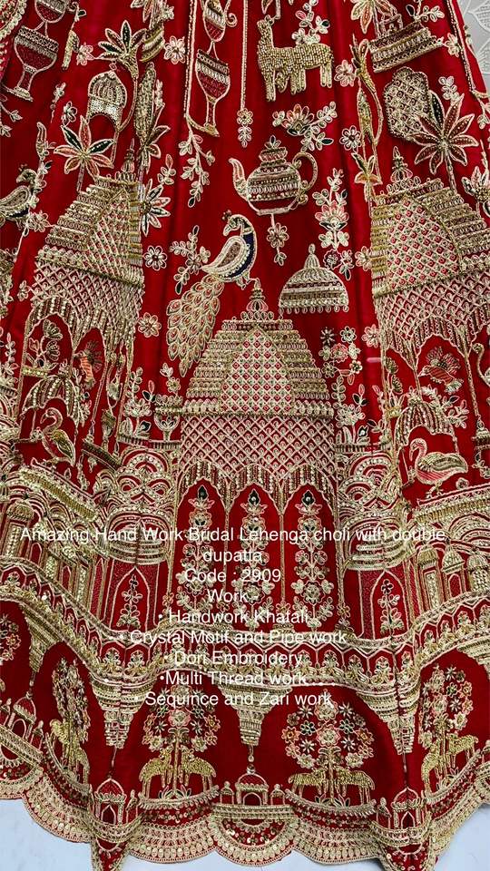 ชุดสำหรับเจ้าสาวผ้าใยไหมหนาปักลายด้วยผ้า lehenga choli